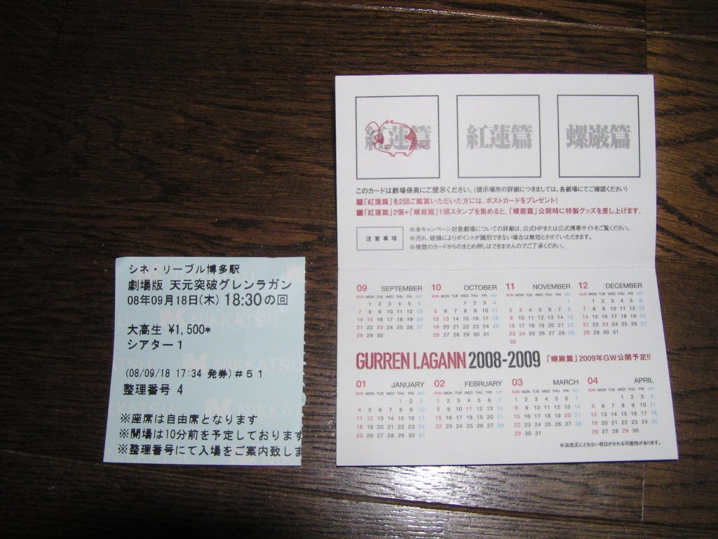 これは、「紅蓮篇」を二回見ると、特製ポストカードがプレゼントされ、